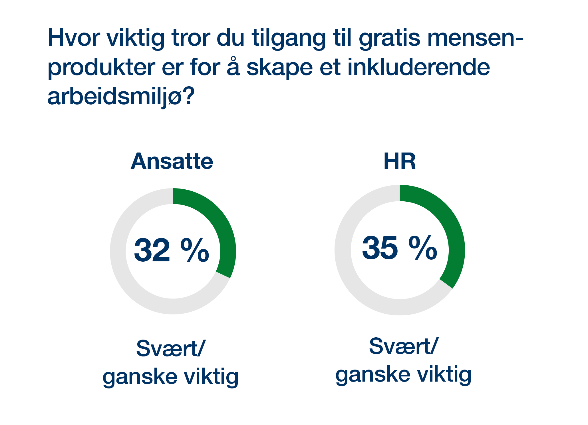 32 % oppgir at tilgang til gratis mensenprodukter er viktig for et inkluderende arbeidsmiljø.